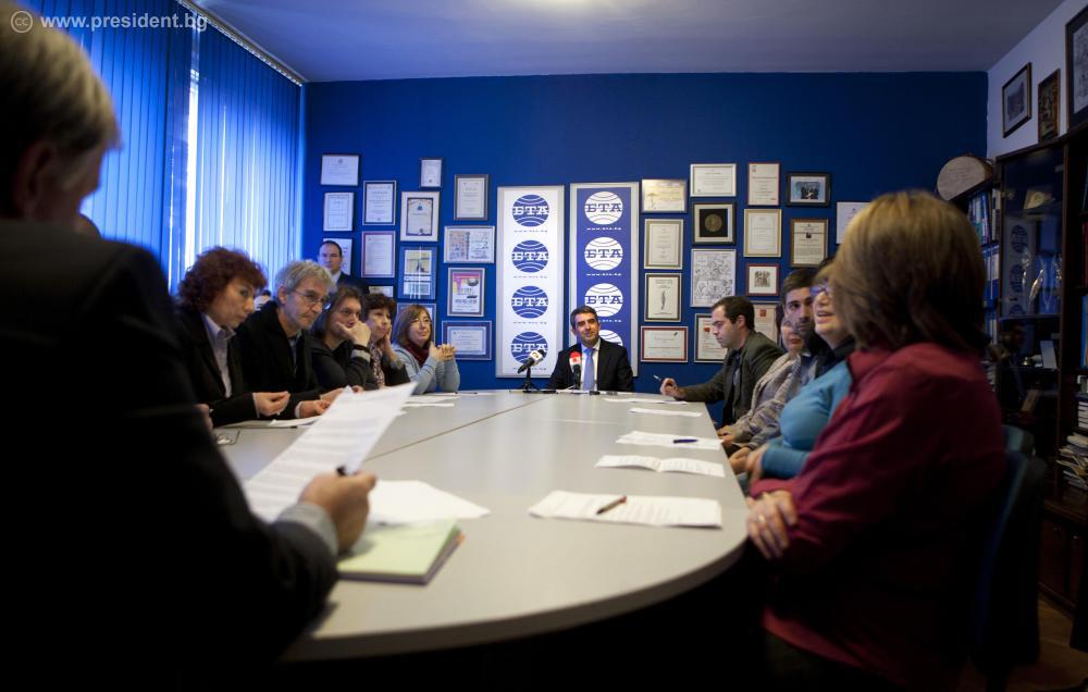 Партийното противопоставяне и протестите са част от демократичния процес, но държавническото отношение изисква от политиците не само способност да се вслушат в гласа на обществото, но и да направят така, че взиманите решения в енергетиката да служат не на лобистки интереси, а на гражданите. За мен е важно, отвъд лозунгите и призивите, да се чуят реалните аргументи – как искаме да развиваме енергетиката в България, какво искаме да постигнем, как ще го финансираме и как това ще се отрази на хората. Това заяви президентът Росен Плевнелиев пред журналисти в БТА. Държавният глава посети днес агенцията, участва в работата на редколегията и откри паметна плоча по повод 115-годишнината от нейното създаване.