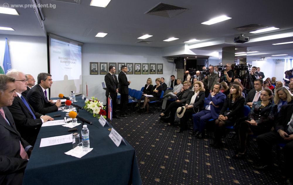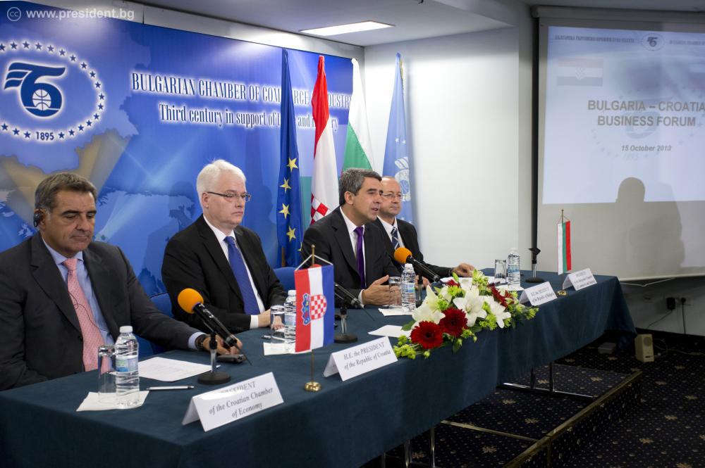 Пред представителите на Хърватската икономическа камара и на Българската търговско-промишлена палата двамата държавни глави призоваха за задълбочаване на контактите между бизнеса от двете страни и за увеличаване на взаимните инвестиции.
