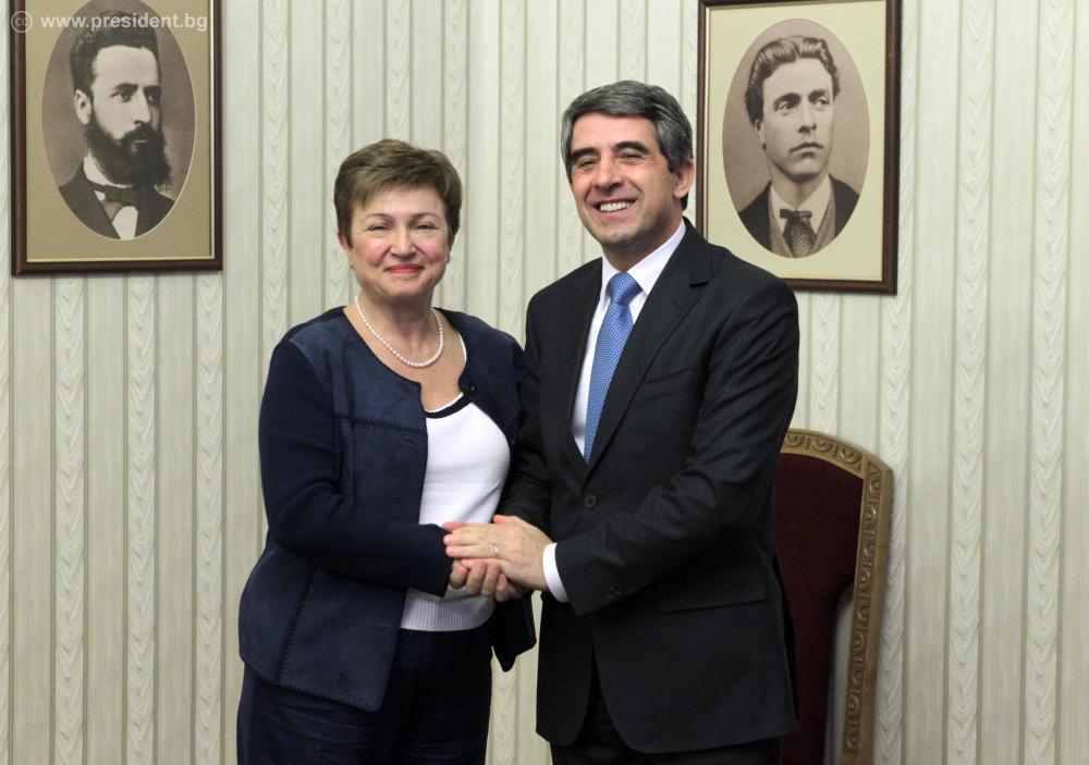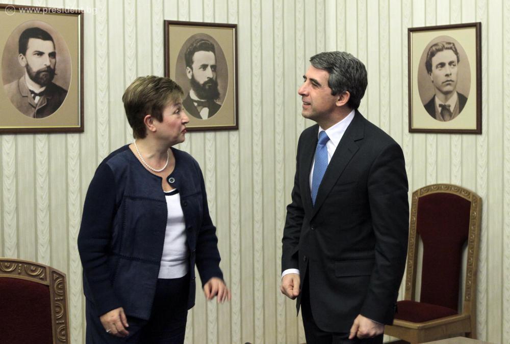 Пред държавния глава комисар Кристалина Георгиева изрази благодарност за номинацията си за втори мандат в Европейската комисия, която беше издигната от назначеното от президента Росен Плевнелиев служебно правителство.