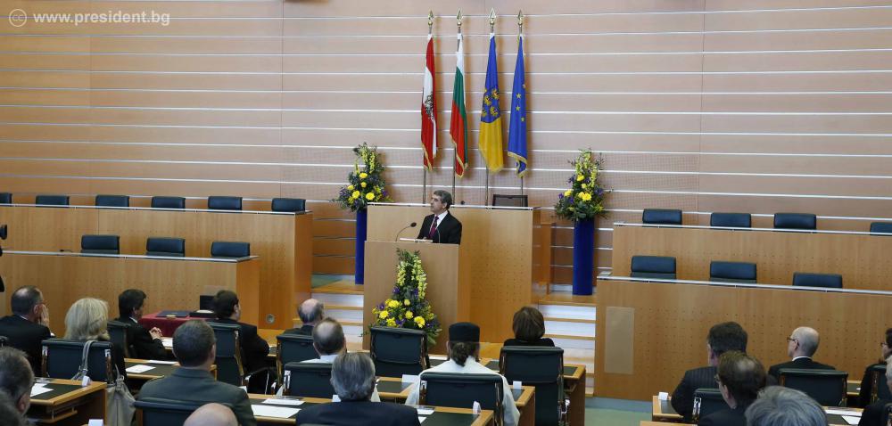 Президентът заяви, че днес страната ни работи за още по-тясна икономическа интеграция на българските и на регионите от Централна и Източна Европа, които са обединени от общ стремеж за реализация на проектите за транспортна и енергийна свързаност и на Дунавската стратегия. „В Европа всички са важни и за всички има перспектива – от най-богатите до най-бедните региони“, подчерта президентът и добави, че в резултат на постигнатия политически и национален консенсус България е определила своите приоритети, които предстои да изпълни до 2020 г. с подкрепата на Европейската комисия.
