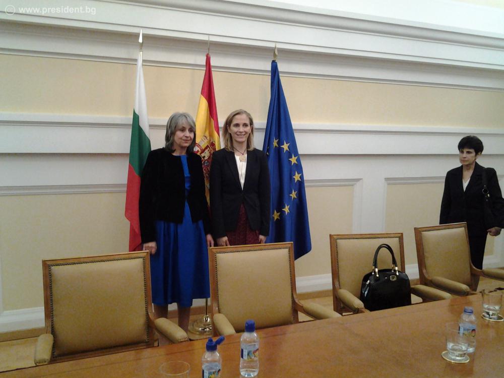 По време на разговора с генералния секретар по въпросите на миграцията в Министерството на заетостта и социалното осигуряване Марина дел Корал Тейес вицепрезидентът Попова акцентира върху предстоящото подписване до края на 2015 г. на Меморандум за социално сътрудничество и Спогодба за сътрудничество в областта на културата между България и Испания. „Много е важно да бъде постигната ясна и устойчива правна база за уреждането на социалния статус на българите в Испания, които вече са около 300 хиляди“, категорична беше Маргарита Попова. Марина Тейес изрази подкрепата си за работещите и учещи в Испания българи, чиито икономически принос е от полза и за двете държави.