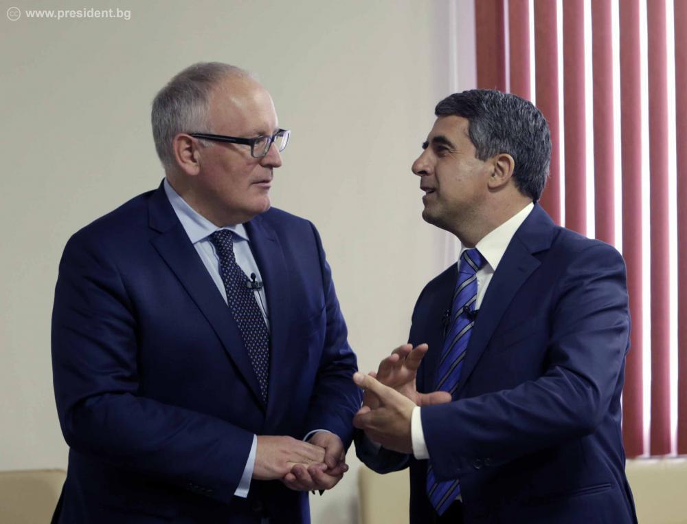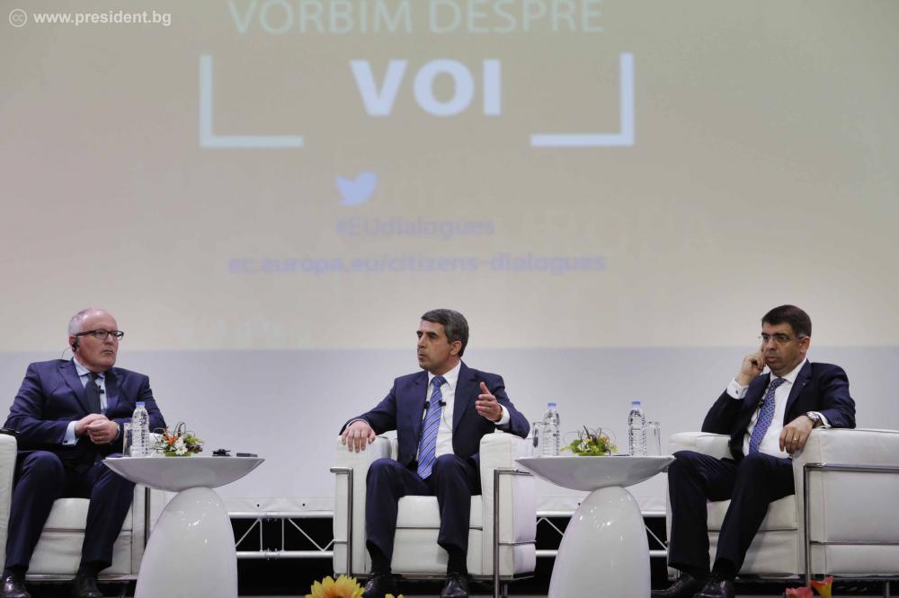 Президентът благодари на заместник-председателя на ЕК Франс Тимерманс за предоставената възможност българските граждани да бъдат активни участници в дебата за бъдещето на Европа и да отправят своите въпроси и предложения директно към Европейската комисия.