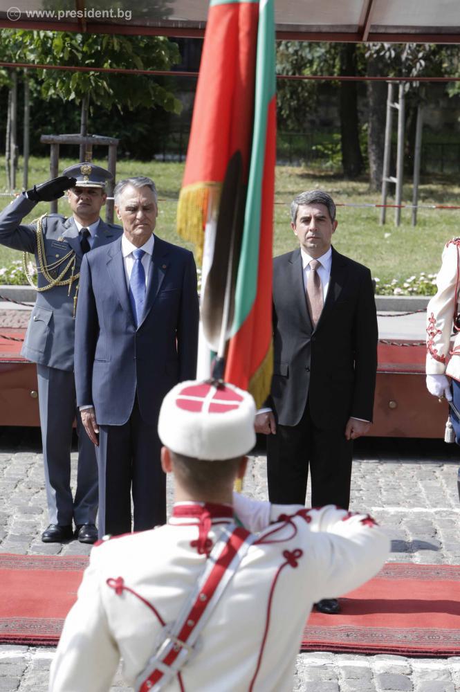Президентът Анибал Каваку Силва беше посрещнат с официална церемония от държавния глава Росен Плевнелиев на площад «Св. Александър Невски” и положи венец пред Паметника на Незнайния воин в столицата.