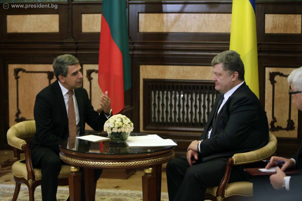 „Ние подкрепяме категорично европейската перспектива на Украйна“, заяви още президентът. Росен Плевнелиев се обяви за бързо и скорошно премахване на визовия режим за Украйна. От своя страна Петро Порошенко благодари за позицията на България в подкрепа на териториалната цялост на Украйна и европейската ориентация на страната. И двамата президенти отбелязаха, че членството на България в ЕС и предприемането на реформи у нас са довели да подобряване на икономическите показатели в страната, на инвестиционния климат и на стандарта на живот.