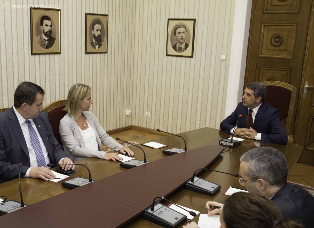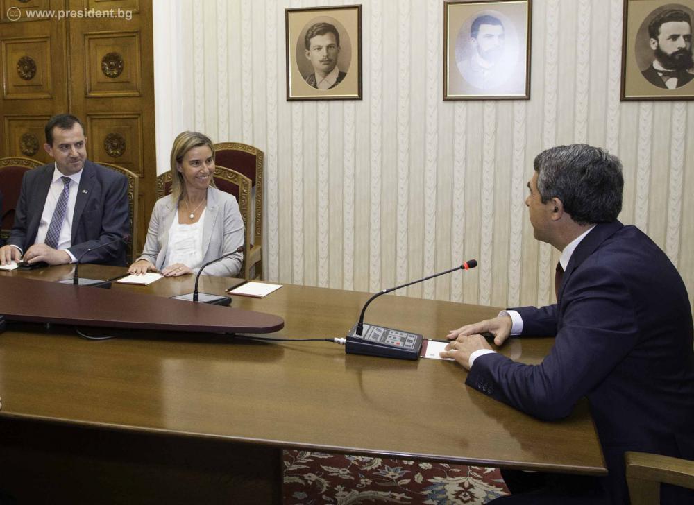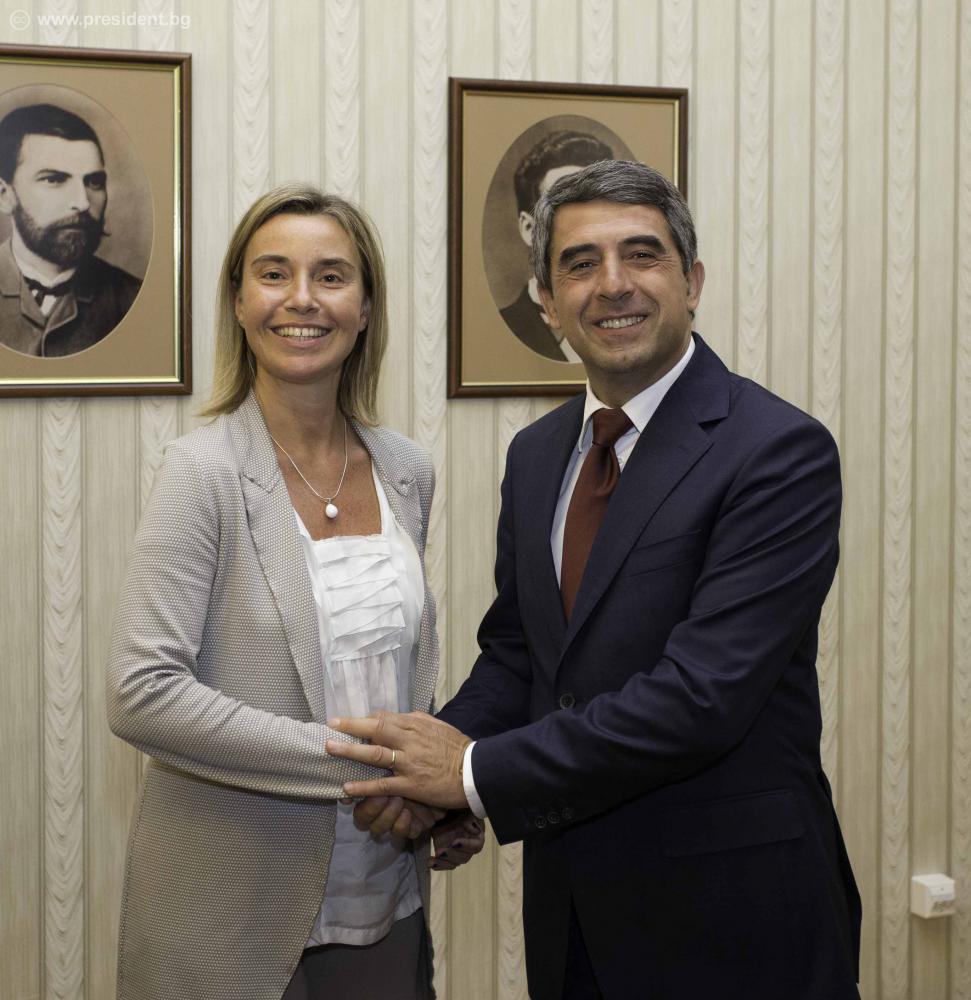 Президентът Росен Плевнелиев прие Върховния представител на ЕС по външната политика и политиката на сигурност Федерика Могерини. Ръководителят на европейската дипломация е на посещение в България за участие в годишната среща на министъра на външните работи Даниел Митов с посланиците на Република България.