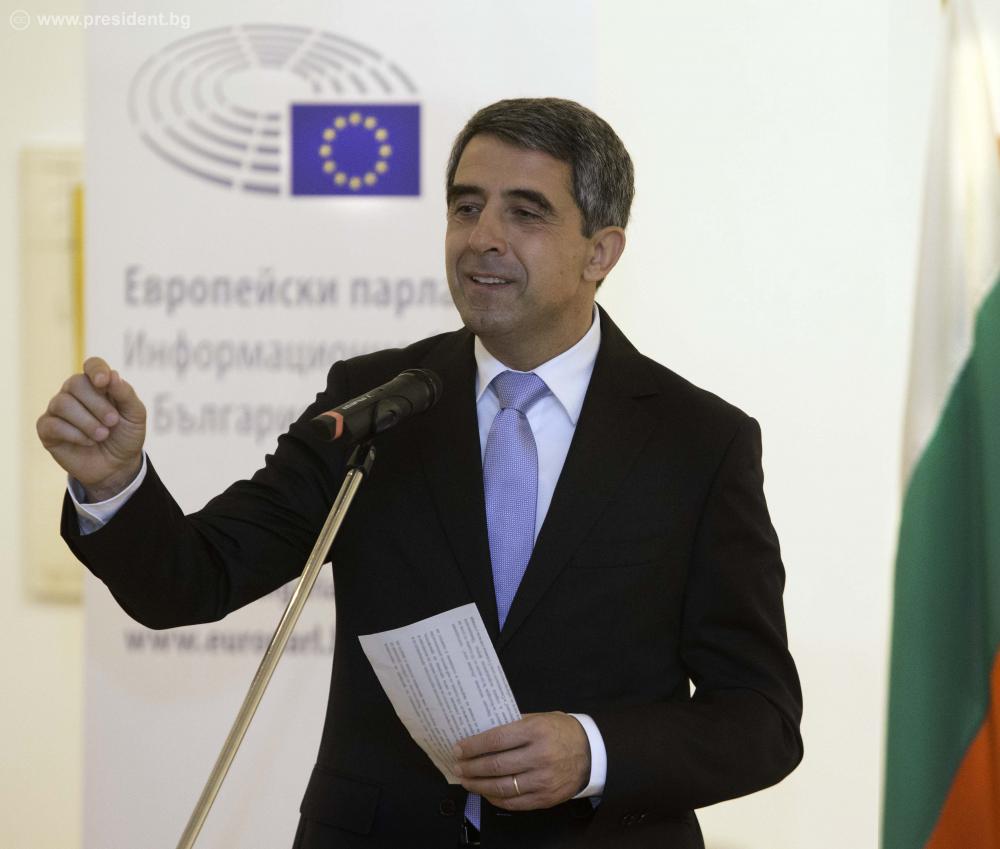 Пред присъстващите на церемонията представители на Европейския парламент и Народното събрание президентът подчерта, че е горд, че българската нация е проевропейска и винаги е част от решението за Европа - силна, обединена и фактор в света, който не само да регистрира, но и да разрешава кризи. Държавният глава изрази увереност, че показвайки в сърцето на Европа – в Европейския парламент, най-доброто от България, помагаме за разбирателството между народите и допринасяме за бъдещето на Европа – обединена, мирна, толерантна, мултикултурна и вярваща в своята специална роля на планетата.