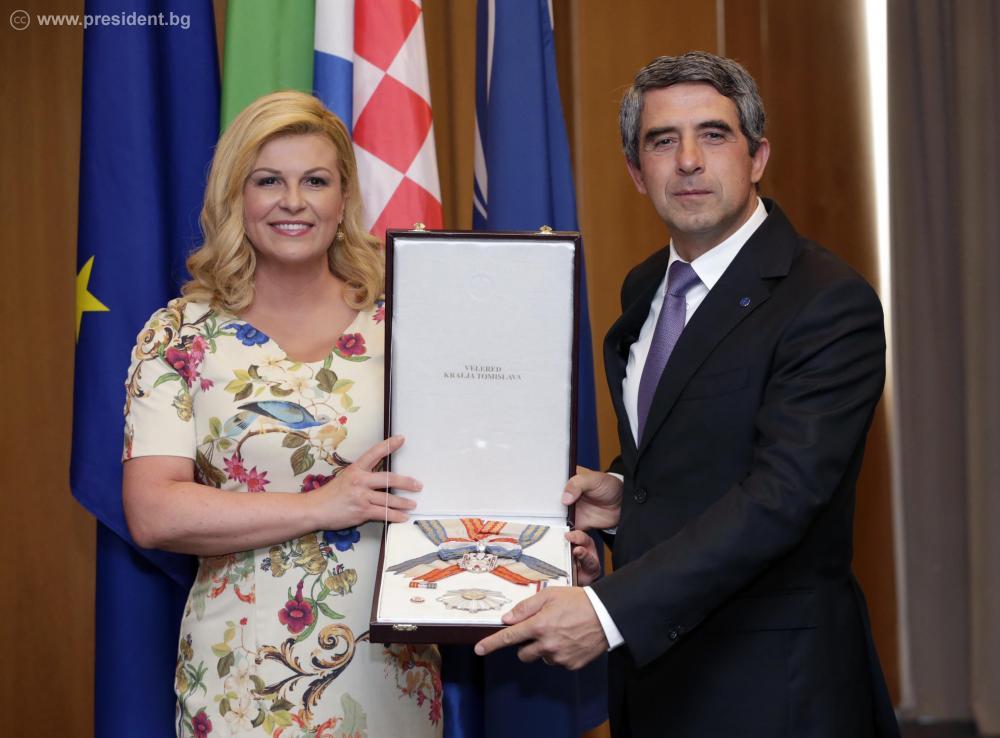Държавният глава Росен Плевнелиев беше удостоен с най-висшето държавно отличие на Република Хърватия - "Великият орден на крал Томислав с лента и голяма звезда" заради заслугите му за мирното и демократично развитие на региона и за създаването на дълбоки и всеобхватни двустранни отношения между двете държави.