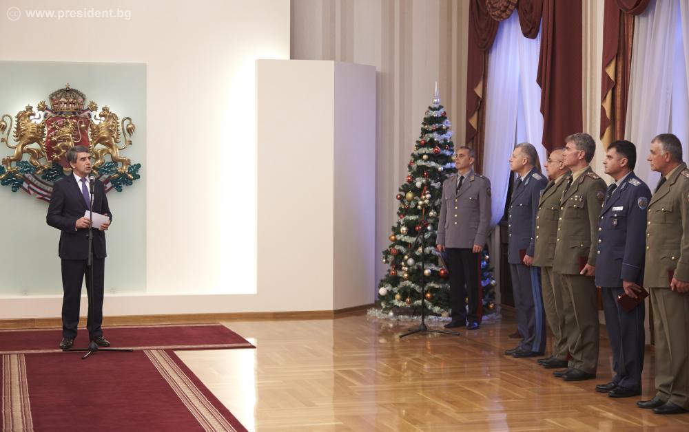 „Многобройни са кризите в Европа и нашия регион, и това прави вашата задача още по-отговорна. Вие сте достойни генерали и с вашата работа спечелихте сърцата на българския народ“, категоричен беше държавният глава, който посочи, че това е последната церемония по удостояване с висши офицерски звания в неговия мандат.