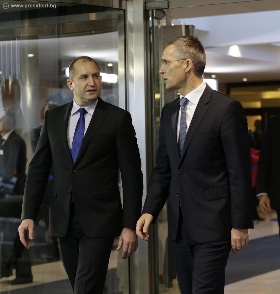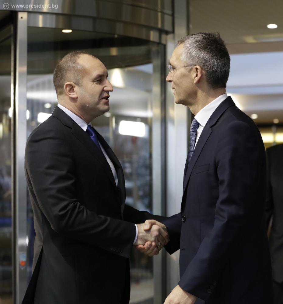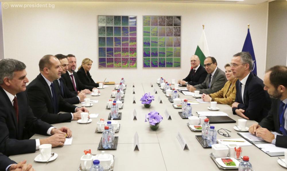 За България НАТО е изключително важна организация, която защитава сигурността на държавите членки и дава своя принос за стабилността в нашия регион. Това заяви президентът Румен Радев на съвместна пресконференция с генералния секретар на НАТО Йенс Столтенберг в Брюксел. Румен Радев подчерта, че посещението на Главната квартира на НАТО, в рамките на първата му работна визита в чужбина като държавен глава, доказва значението на Алианса за България като организация на споделени ценности и отговорности и за колективната сигурност и отбрана.