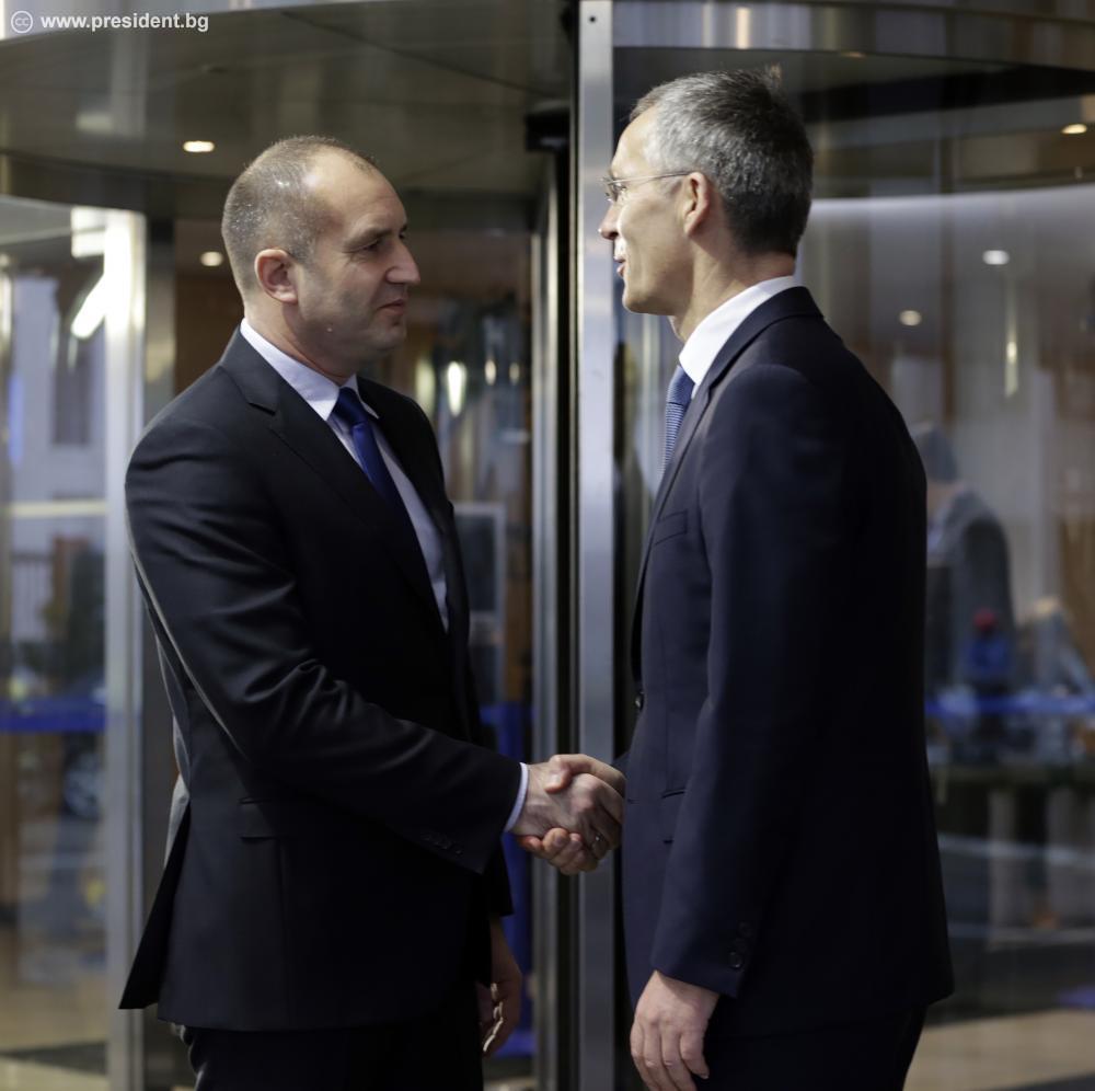 „Повече от тринадесет години България е ценен съюзник, който многократно оказа важна подкрепа за колективната ни отбрана“, подчерта Йенс Столтенберг и открои ролята на страната ни за изграждането на отбранителни способности на НАТО в Черноморския регион, както и приноса към мироопазващите мисии на Алианса в нашия регион и по света. „Като командващ Военновъздушните сили на България Вие дадохте своя принос за опазване на нашето въздушно пространство и съм уверен, че ще останете ангажиран и като държавен глава с усилията на НАТО за гарантиране на общата сигурност“, обърна се Йенс Столтенберг към президента Румен Радев.