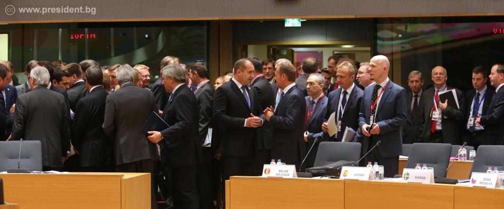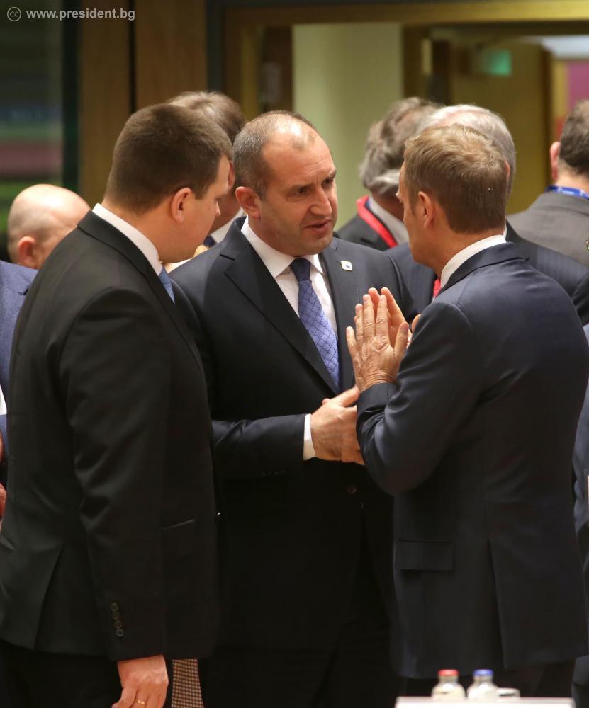 При посещението си в Брюксел президентът Радев е обсъдил ситуацията в Югоизточна Европа и политическата криза в Република Македония с председателя на Европейския съвет Доналд Туск и с върховния представител по въпросите на външната политика и на сигурността Федерика Могерини. „Получих гаранция, че въпросът за Република Македония ще бъде поставен много сериозно и че ще бъде оказана подкрепа за възстановяване на диалога между политическите партии и институциите“, посочи държавният глава. „Това е най-важното в този момент за запазване на сигурността в региона“, добави Румен Радев и подчерта, че бъдещето на страните от Западните Балкани ще бъде във фокуса на Българското председателство на Съвета на ЕС през първата половина на 2018 г.