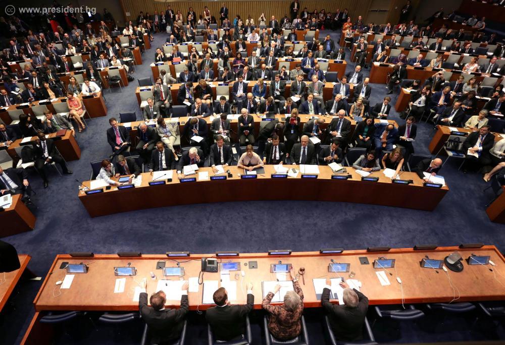 В рамките на работното си посещение в САЩ, президентът Румен Радев участва в Глобалния бизнес форум на Майкъл Блумбърг, с когото размени мнения по политически и финансови въпроси. По-късно българският държавен глава взе участие и в международна конференция „Предотвратяване на използването на интернет за терористични цели“, организирана от президента на Франция Еманюел Макрон и министър-председателя на Обединеното кралство Тереза Мей.