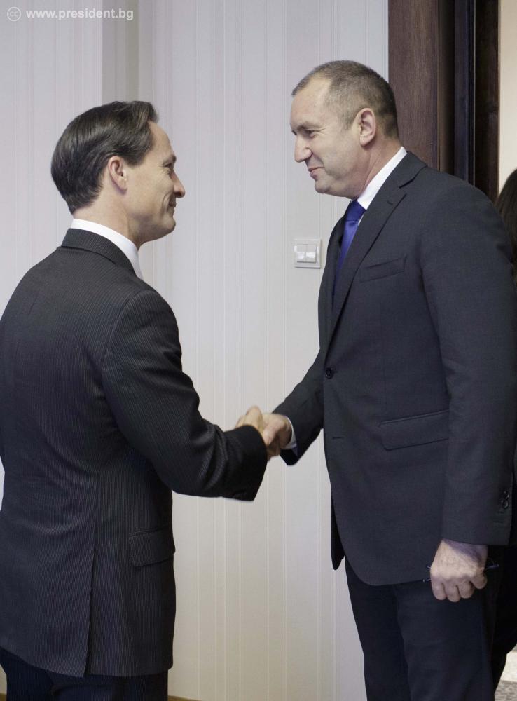 По време на срещата президентът подчерта преимуществата на страната ни като част от общия пазар на ЕС, ключовото разположение в Югоизточна Европа, изграждащите се енергийни и транспортни коридори, свързващи ни със съседните региони, атрактивното данъчно облагане и квалифицирана работна ръка. Държавният глава открои също така стратегическото партньорство на България и САЩ в сферата на сигурността и отбраната, в борбата с тероризма и в правосъдието и призова за увеличаване на нивото на икономическия и инвестиционен обмен между двете държави.