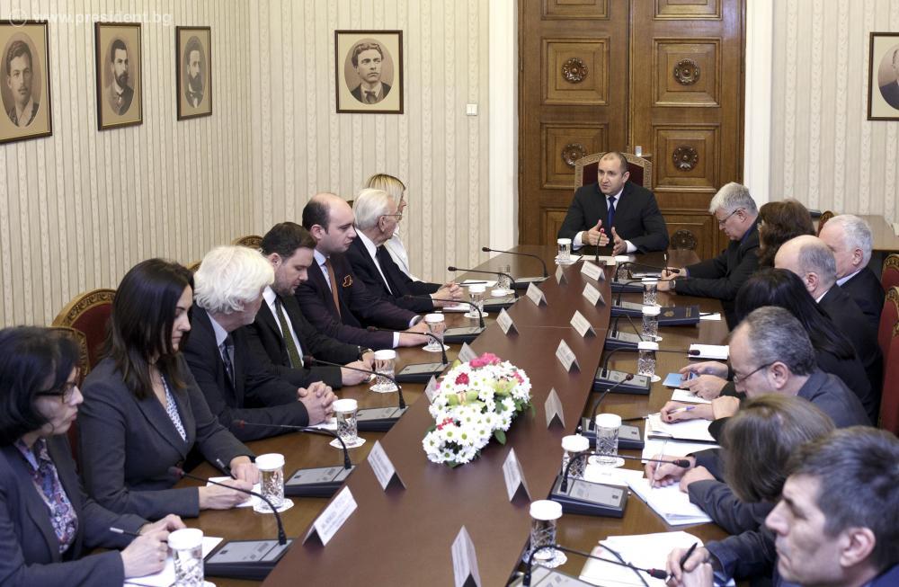 Държавите от Балканите трябва да демонстрират ясно своето единство и политическата си воля пред европейските институции за създаването на международен Институт за устойчиви технологии в Югоизточна Европа. Този проект ще насърчи процеса на европейска интеграция в нашия регион в областта на науката, образованието и медицината, и ще създаде нова перспектива за технологичен обмен и реализация на младите учени. Това заяви президентът Румен Радев, който проведе днес среща на „Дондуков“ 2 с членовете на Управителния съвет на Югоизточния Европейски международен Институт за устойчиви технологии. Сред участниците в срещата бяха министри и зам.-министри на образованието, науката, технологиите, както и държавни секретари на страните от Западните Балкани, също и водещи eвропейски учени, работещи в ЦЕРН.