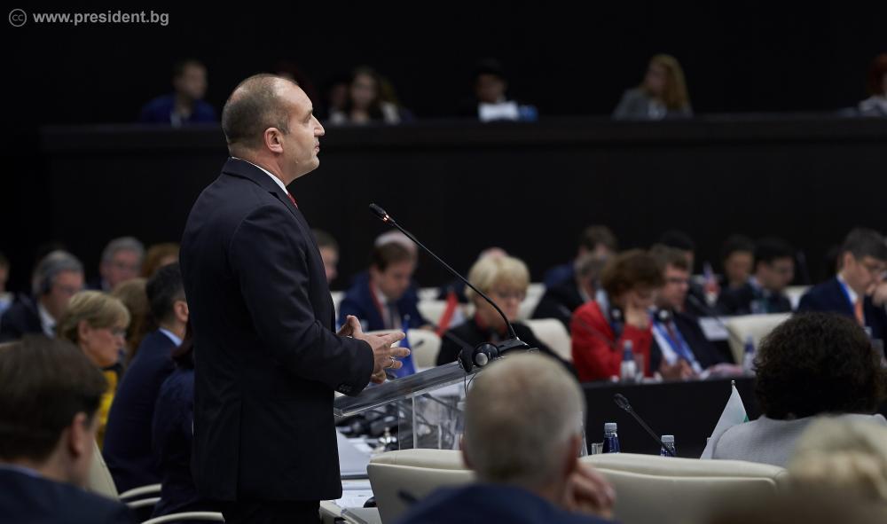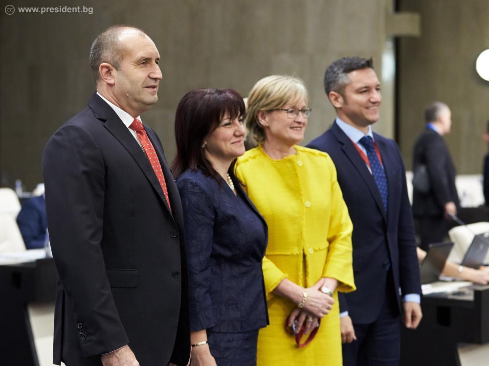 „Обстановката, в която се развива Европейският съюз днес, е динамична, противоречива и непредсказуема. По пътя ни напред има много общи предизвикателства и споделени рискове“, каза още Румен Радев и определи като основна задача през общността запазването на общите ценности и надграждането на постиженията на Европейския съюз.