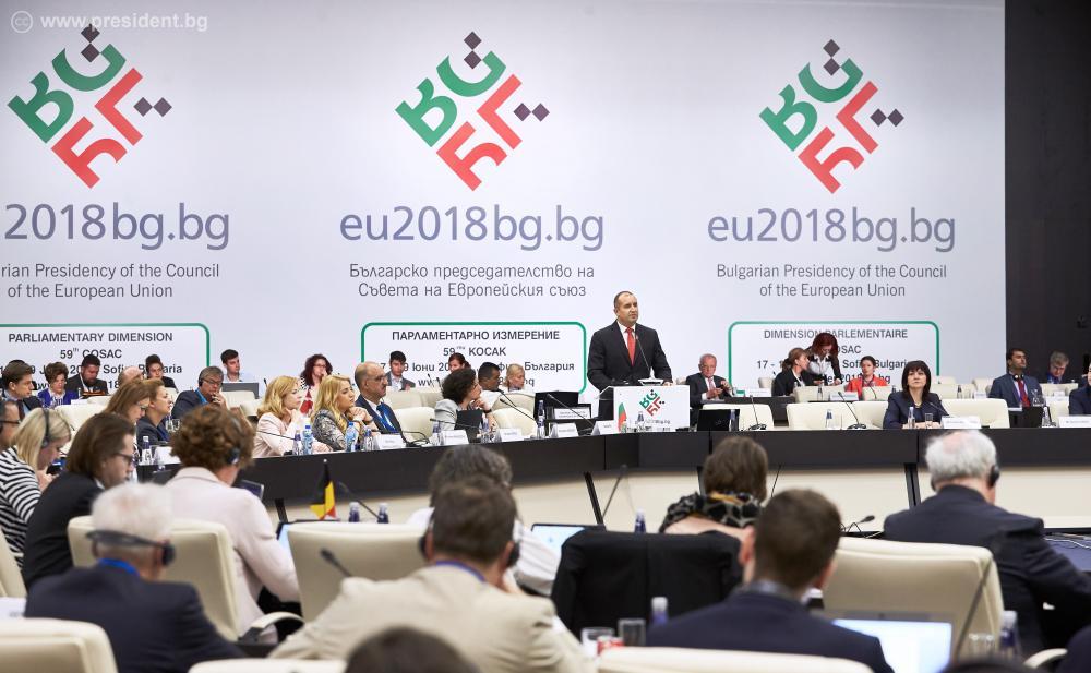 Активното участие на националните парламенти на държавите членки е жизненоважно за Европейския съюз. Като най-представителни демократични органи, именно парламентите свързват европейските политики и националните общества. Това заяви държавният глава Румен Радев, който днес в Националния дворец на културата все участие в заключителната пленарна среща на Конференцията на комисиите по европейските въпроси на парламентите на Европейския съюз, в рамките на българското председателство на Съвета на Европейския съюз.