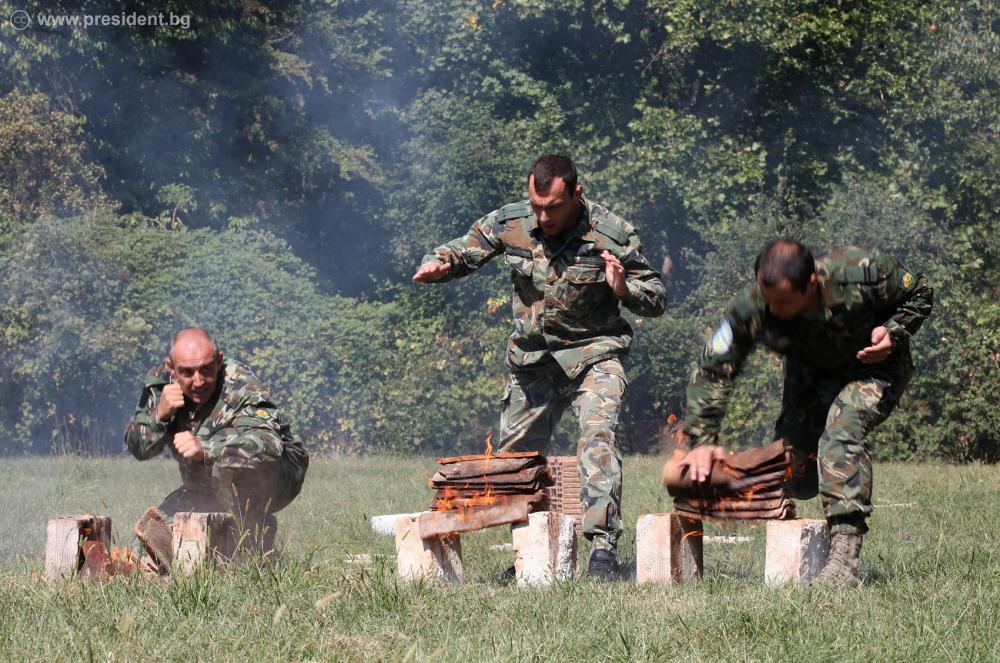 В местността Крънска кория държавният глава наблюдава демонстрации на бойни техники, скокове с парашут, способности на групите за специални операции и висш пилотаж със спортен самолет, демонстрирани от 68-а бригада „Специални сили“ и Военновъздушните сили.