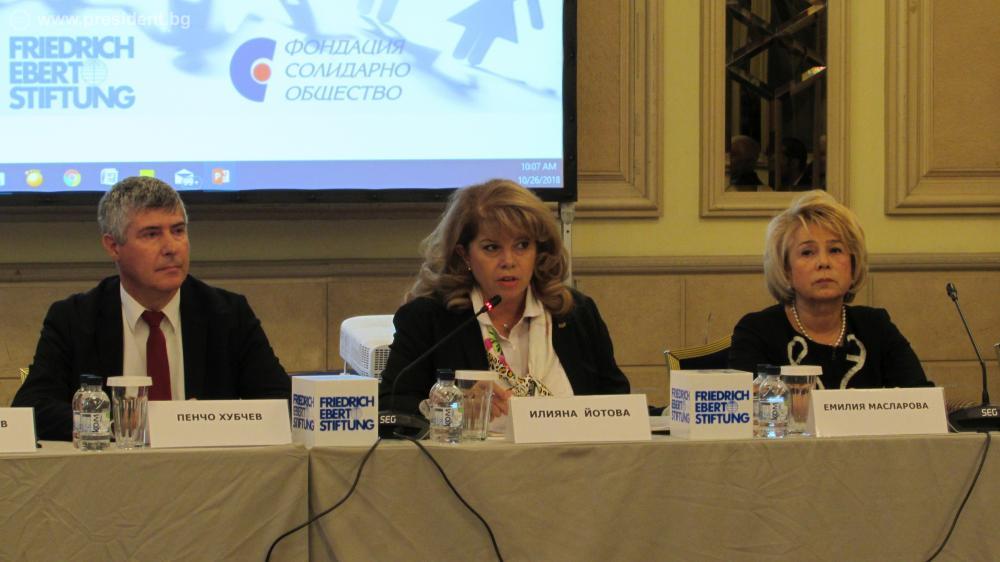 „Липсва умна и реалистична икономическа програма за развитието на България. Ние, българските граждани, не знаем къде ще бъде страната нито след 10, нито след 20 години, нито в по-дългосрочна перспектива.“ Това заяви вицепрезидентът Илияна Йотова, която откри в София конференцията „Демографската криза в България – реалности, проблеми и решения“, организирана от Фондация „Фридрих Еберт“ и Фондация „Солидарно общество“. По думите на вицепрезидента държавната политика не е остаряло понятие, а най-сериозният дефицит на България.