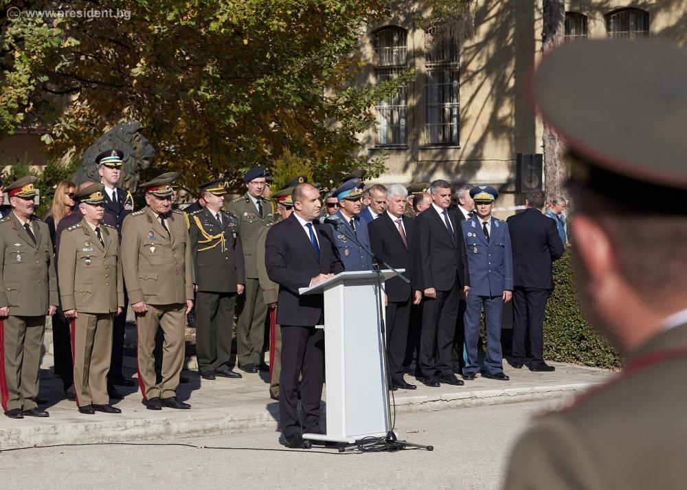 Снимки: В. Николов„Убеден съм, че предстоят по-добри времена, че българските Въоръжени сили ще имат ресурс, адекватен на задачите в съвременната динамична среда за сигурност. Но по-добрите условия, в които вие да разгърнете вашия голям потенциал не зависят само от финансовото осигуряване. Те са и въпрос на правилно приоритизиране, на научен подход и ефективна организация, на лидерство и борбеност от всеки един от вас.“ Това заяви в приветственото си слово държавният глава и върховен главнокомандващ на Въоръжените сили Румен Радев, който бе гост на тържеството по случай завършването на „Випуск Ботевски – II смяна“ на Военна академия “Георги Стойков Раковски”.