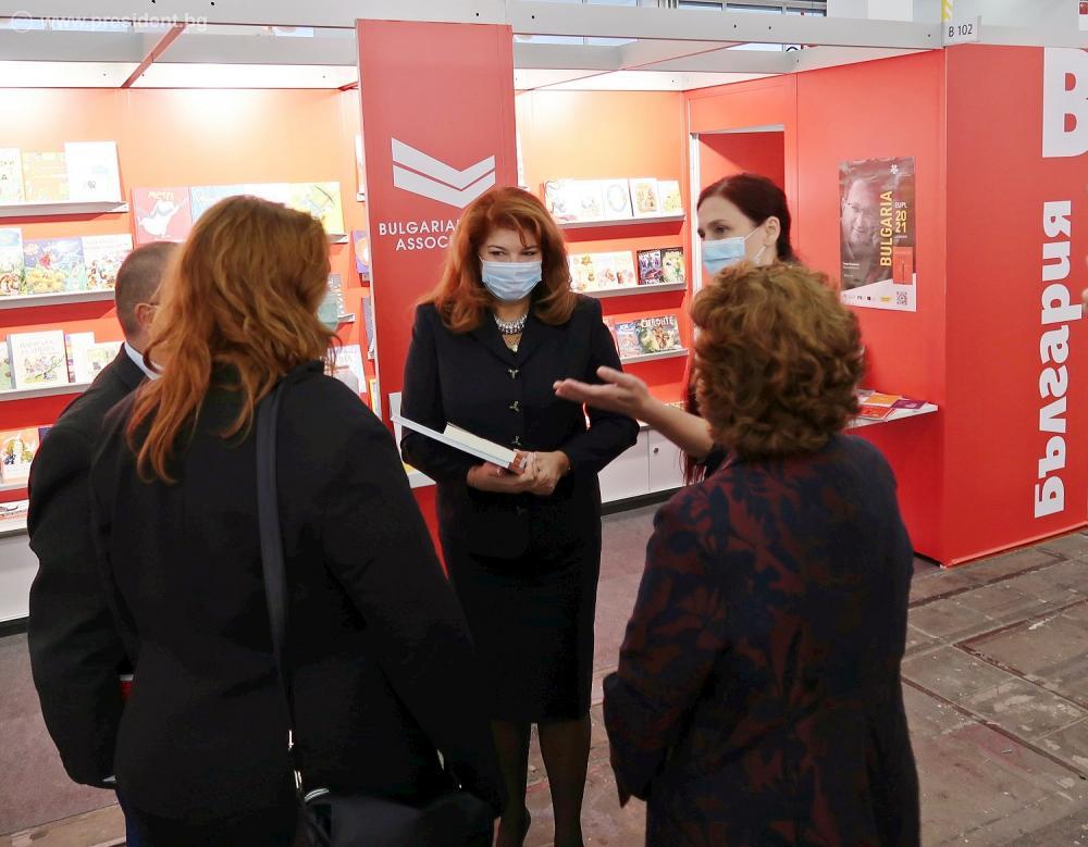Представянето на България на панаира традиционно се реализира от Асоциация „Българска книга“ с подкрепата на Министерство на културата. Гост е писателят Георги Бърдаров – носител на Европейската награда за литература. „Българският културен институт, който искаме да създадем, ще бъде естественият партньор на българските книгоиздатели и автори“, посочи вицепрезидентът. В приветствието си тя подчерта, че е необходимо да се стимулират и българските преводачи, които разпространяват българското слово по света.