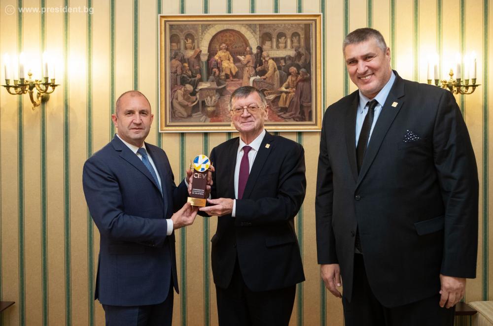 Александър Боричич връчи на Румен Радев почетен плакет на Европейската конфедерация по волейбол за приноса на българския държавен глава за насърчаване на спорта сред младите хора и подкрепата му за волейбола.
