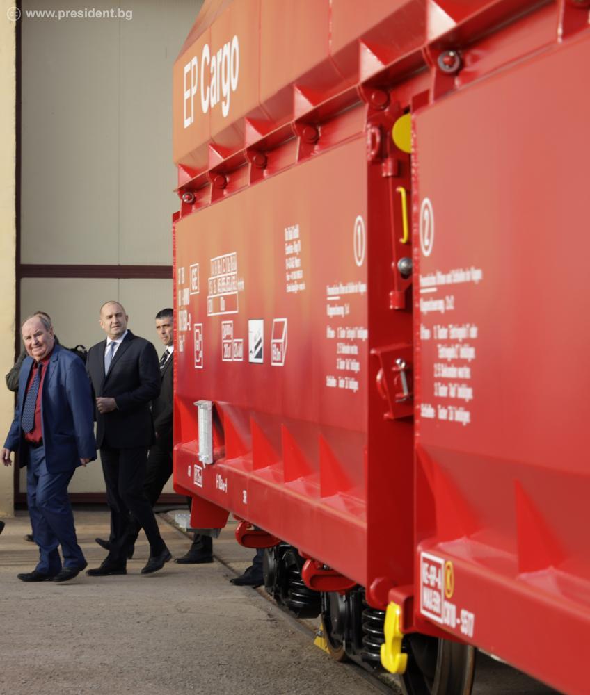 „Производството на този завод задължително трябва да бъде част от модернизацията на българските железници“, заяви Румен Радев в отговор на въпрос. По думите на държавния глава в зеления преход една от тенденциите е автомобилният транспорт да намалява като пробег, а за голяма част от товарите да се използва железопътен превоз.