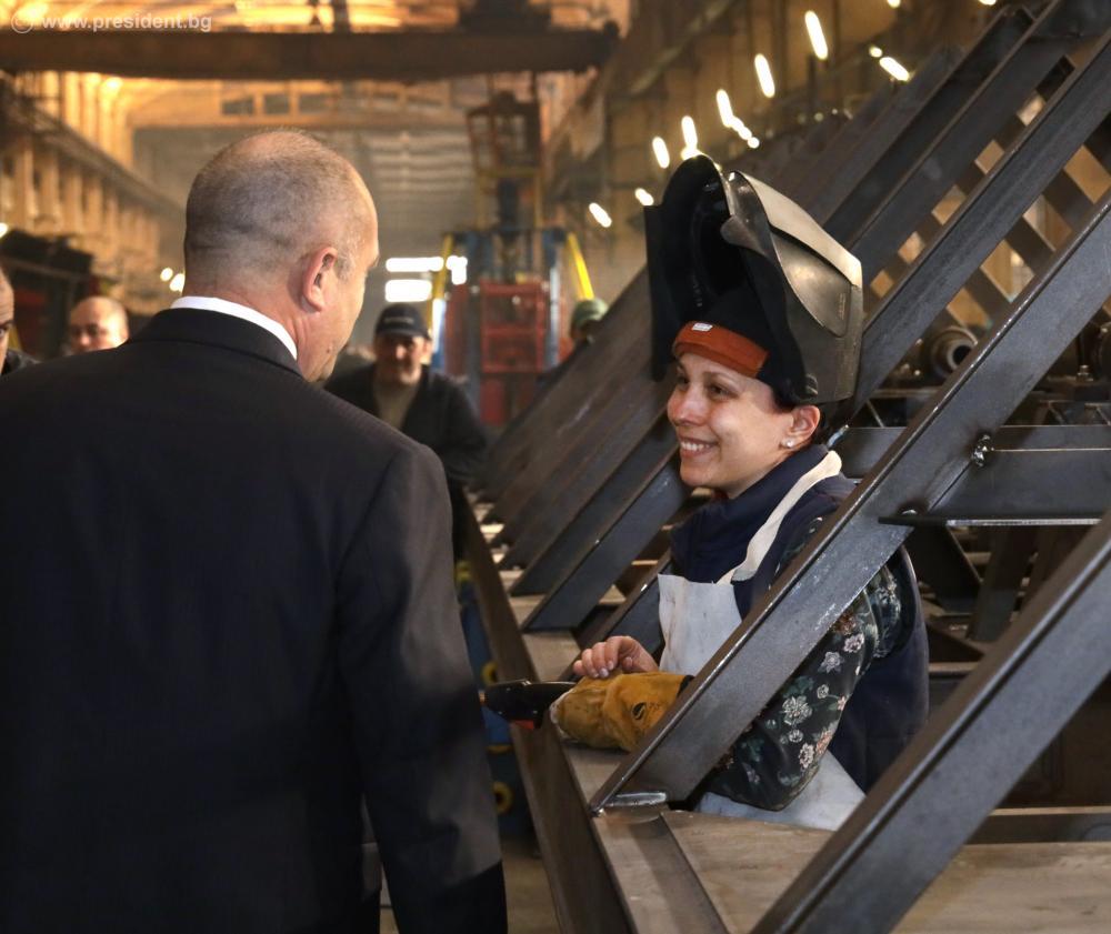 Президентът разгледа производствената база на предприятието и поздрави ръководството и колектива за постигнатите високи резултати, въпреки сложната икономическа обстановка, породена от растящите цени на енергоресурсите. „С много предприемчивост, отговорност и усилия продължавате не само да оцелявате, но и произвеждате с изключително високо качество и изнасяте в държави като Германия“, подчерта Румен Радев. По думите му това е атестат, че в България може и се развива успешна тежка индустрия.