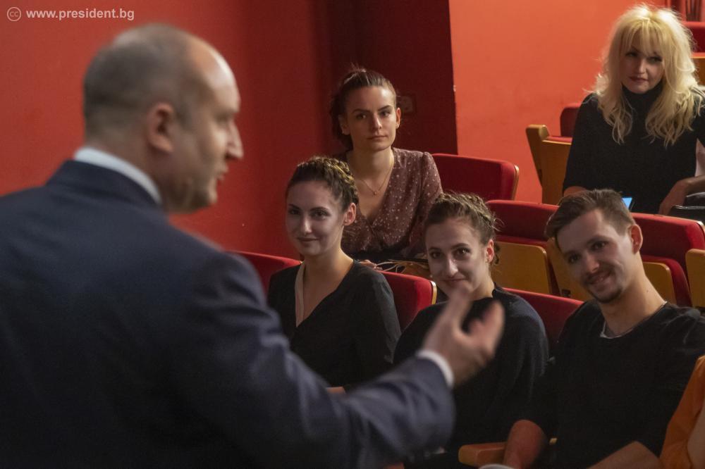В днешния все по-динамичен свят вие ни помагате да открием какво всъщност ни прави хора и къде да търсим устоите на нашите морални ценности. Това заяви държавният глава пред студентите и преподавателите от Националната академия за театрално и филмово изкуство по случай Световния ден на театъра – 27 март.