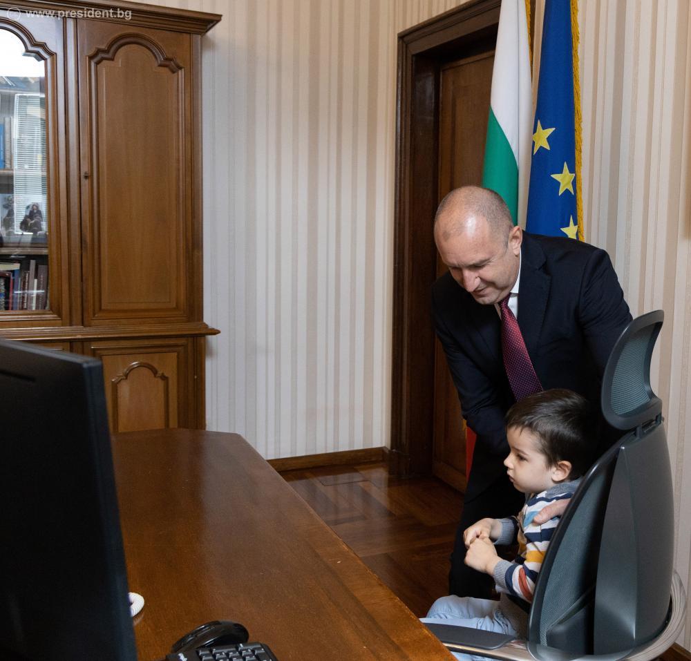 Илияна Йотова работи днес с Дориан Неделчев. Момчето е от Националната природо-математическа гимназия „Акад. Любомир Чакалов“ в София и стана вицепрезидент за един ден.