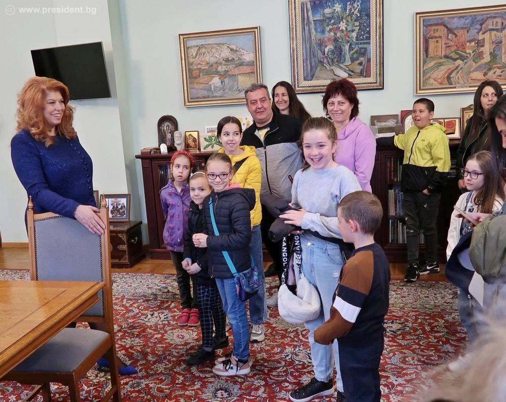 “Президентът и вицепрезидентът трябва да имат сърце, което да бие за България“, заяви държавният глава на гостите. „Вратите на президентската институция и нашите кабинети с президента Радев са отворени всеки ден за всеки български гражданин, който иска да сподели с нас тревогите или идеите си“, каза вицепрезидентът Йотова.