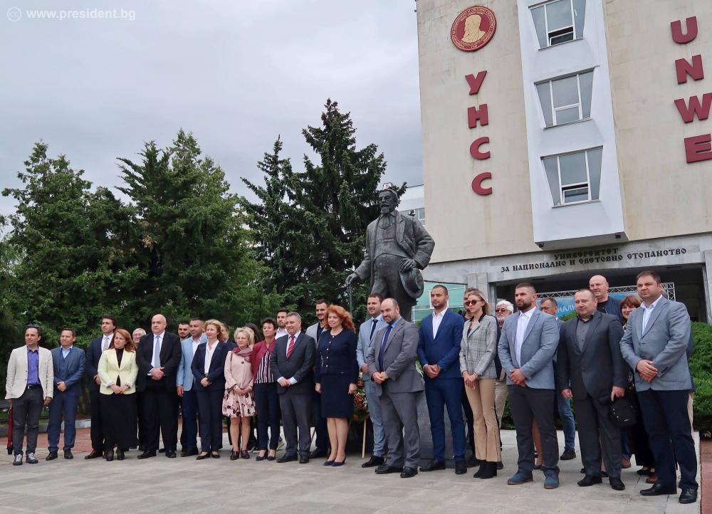 По-рано вицепрезидентът поднесе цветя пред паметника на проф. Стефан Бобчев – основател и първи ректор на университета. Йотова проведе среща с ректора на УНСС проф. д-р Димитър Димитров.