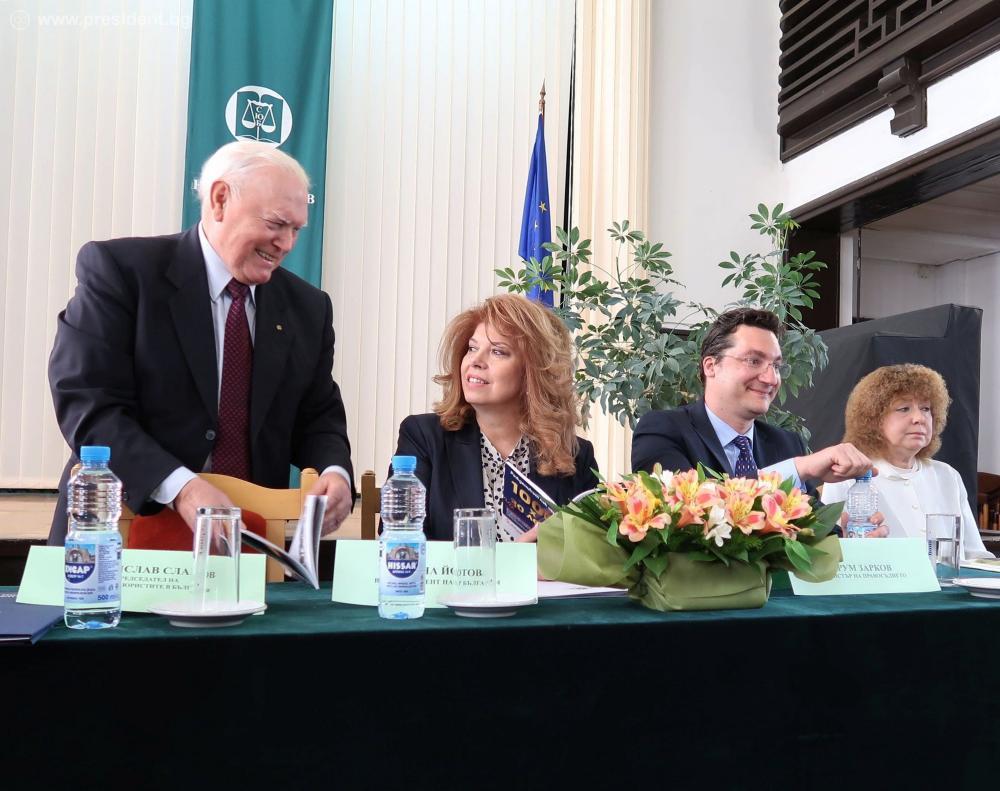 Вицепрезидентът поздрави българските юристи, като изрази гордостта си от приноса им за утвърждаването на конституционализма и правовия ред в България. „Няма по-висша ценност от правосъдието. Именно тогава хората разбират, че държавата застава зад тях, че тя им гарантира справедливост“, посочи Йотова.