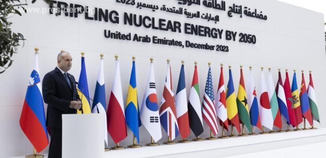 Nuclear energy gives and delivers sovereignty, autonomy and security for every country, President Rumen Radev said during the official presentation of the Declaration on Tripling the Share of Nuclear Energy by 2050. The top-level event was held on the sidelines of the Conference of the Parties to the UN Framework Convention on Climate Change (COP28) in Dubai, United Arab Emirates. Head of State Rumen Radev led the Bulgarian delegation at the global forum.