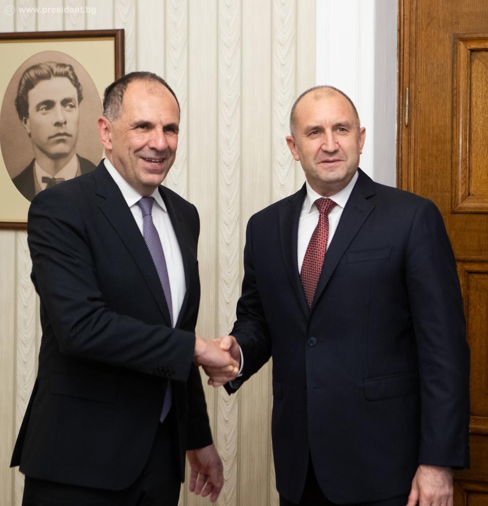 Bulgaria seeks the comprehensive development of transport and energy connectivity in the region as a key factor for stability in Southeast Europe. This is what Head of State Rumen Radev said at a meeting today in Sofia with the Minister of Foreign Affairs of the Hellenic Republic, George Gerapetritis, who is on an official visit to Bulgaria. During the talks, the importance of the strategic partnership between Bulgaria and Greece was highlighted, and Radev and Gerapetritis stressed that the top-level active and constructive dialogue between the two countries is a prerequisite for deepening cooperation in all areas of mutual interest.