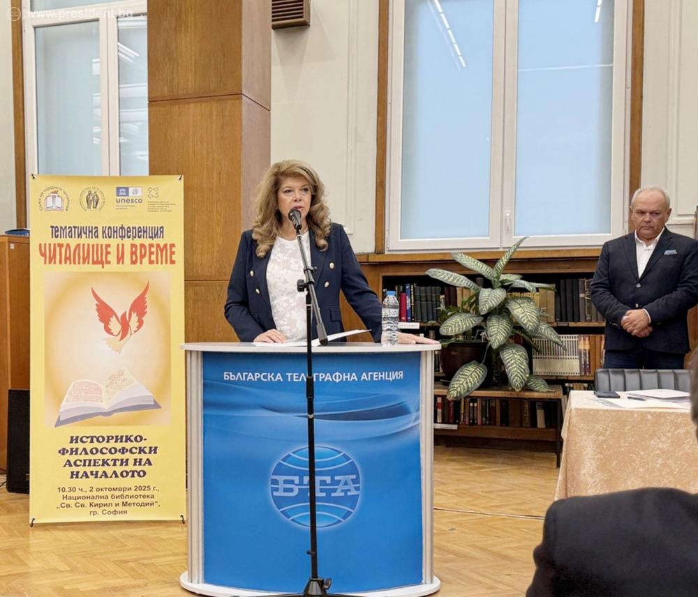 Читалището ни учи, че духовността не е абстракция, а нашият ежедневен избор. Духовността е формирала българската държава и българската нация. Духовността е най-голямото ни богатство, което ни представя пред света. Това заяви вицепрезидентът Илияна Йотова на откриването на конференцията „Читалище и време. Историко-философски аспекти на началото“. Събитието се организира от Съюза на народните читалища в партньорство с Регионалния център за опазване на нематериалното културно наследство в Югоизточна Европа под егидата на ЮНЕСКО и Националната библиотека „Св. св. Кирил и Методий“. Конференцията е първото от поредица събития, посветени на предстоящата през 2026 г. 170-годишнина от основаването на общонародното читалищно дело.