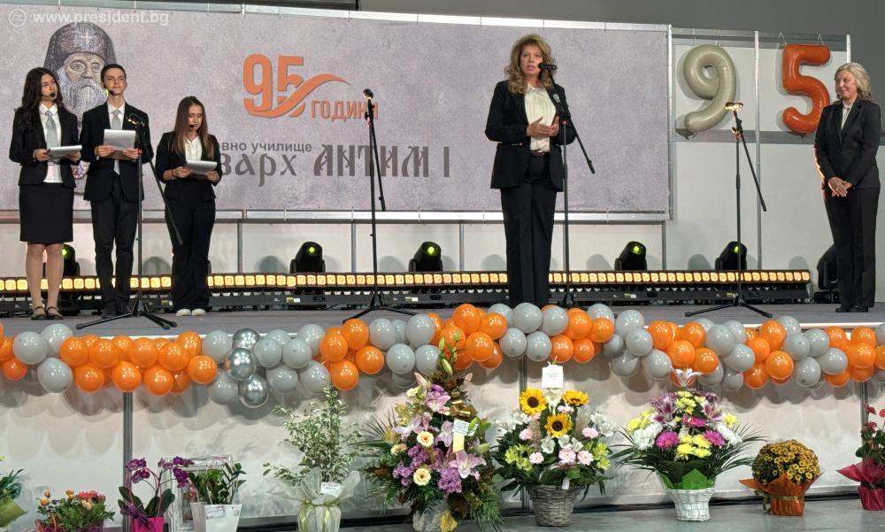 „Ще бъда блажен, ако с моята саможертва възкръсне България за нов свободен живот!“ Тези думи на екзарх Антим I – един от най-великите българи, чието име остава недостатъчно познато, трябва да бъдат завет за всички българи. Да черпим от него пример как се обича Родината и как се гради държавност. Това заяви вицепрезидентът Илияна Йотова на тържественото честване на 95-годишнината на Основно училище „Екзарх Антим I“ в Пловдив.