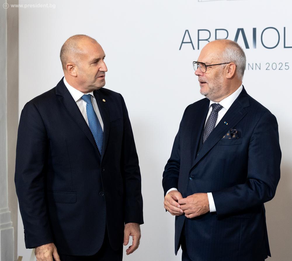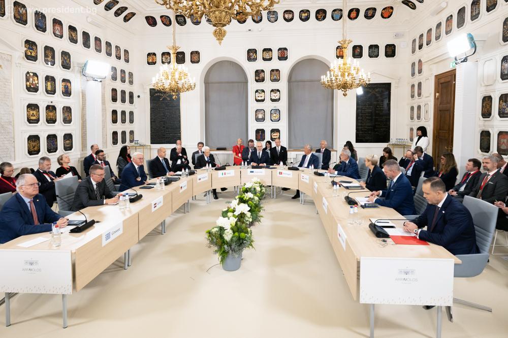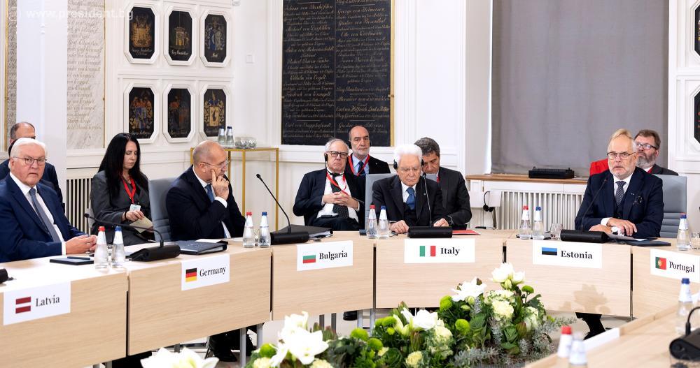 Най-важната задача пред ЕС е намирането на мирно решение на войната на нашия континент като задължително условие за установяване на траен мир, сигурност и просперитет. Това заяви президентът Румен Радев преди провеждането на годишната среща на президентите от групата „Арайолуш“ в Талин, Естония. Държавният глава е на посещение в естонската столица по покана на своя колега Алар Карис за участие във форума, в който се включиха държавните глави на Австрия, България, Германия, Гърция, Естония, Италия, Латвия, Полша, Португалия, Словакия и Словения.