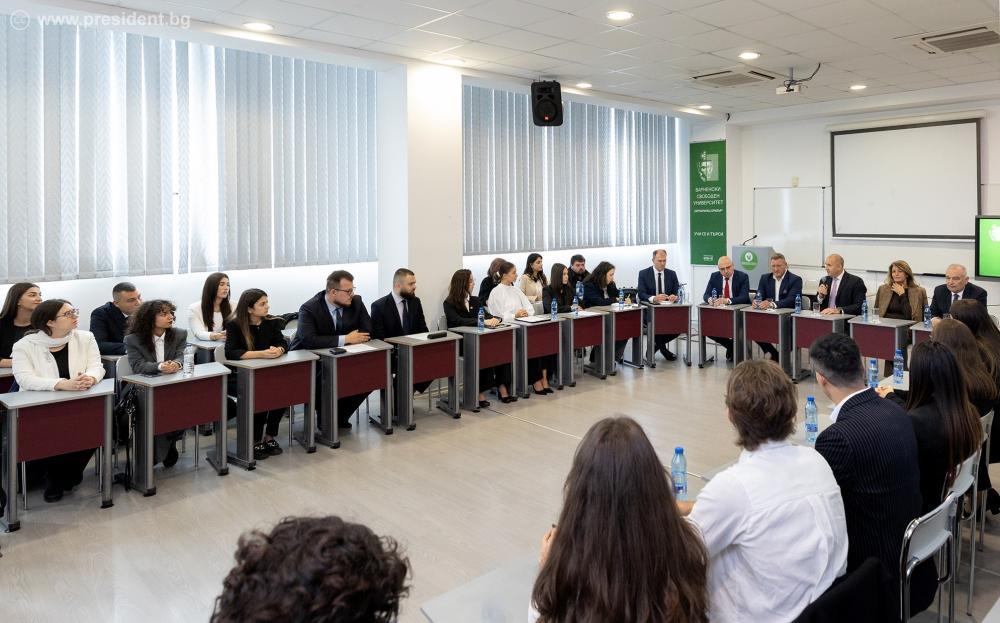 В рамките на разговора президентът открои ролята на студентите като двигател на обществените процеси, носители на идеали, ценности и на прогреса, които задават най-важното - перспектива за бъдещето. Затова, по думите му, политиката трябва да гарантира устойчиво и успешно бъдеще на България чрез подкрепа за младите хора.