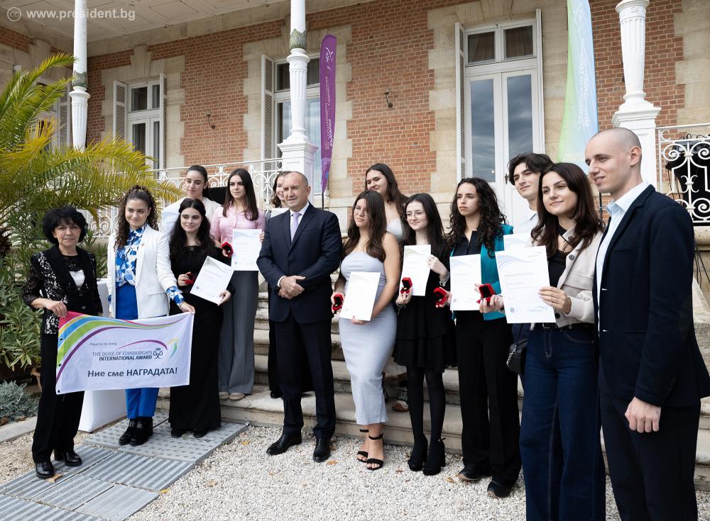 Наградата на херцога на Единбург е международно утвърдена програма, която насърчава младите хора да полагат усилия и да постигат лични цели в различни области – доброволчество, физическа активност, развитие на умения, проекти в полза на общността. В България Международната награда на херцога на Единбург се провежда под патронажа на държавния глава, като тази година за първи път церемонията се проведе в резиденция „Евксиноград“ във Варна. Президентът Радев връчи почетните значки на 12 младежи, завършили златно ниво. Сертификатите си отличените получиха от посланика на Великобритания у нас Натаниел Копси.