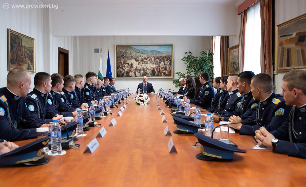 „Бъдещето на българските ВВС трябва да стъпи на здрави ценностни основи, произтичащи от нашите идеали, история и отговорност към Родината“, заяви Румен Радев на среща с курсанти от Висшето военновъздушно училище „Георги Бенковски“