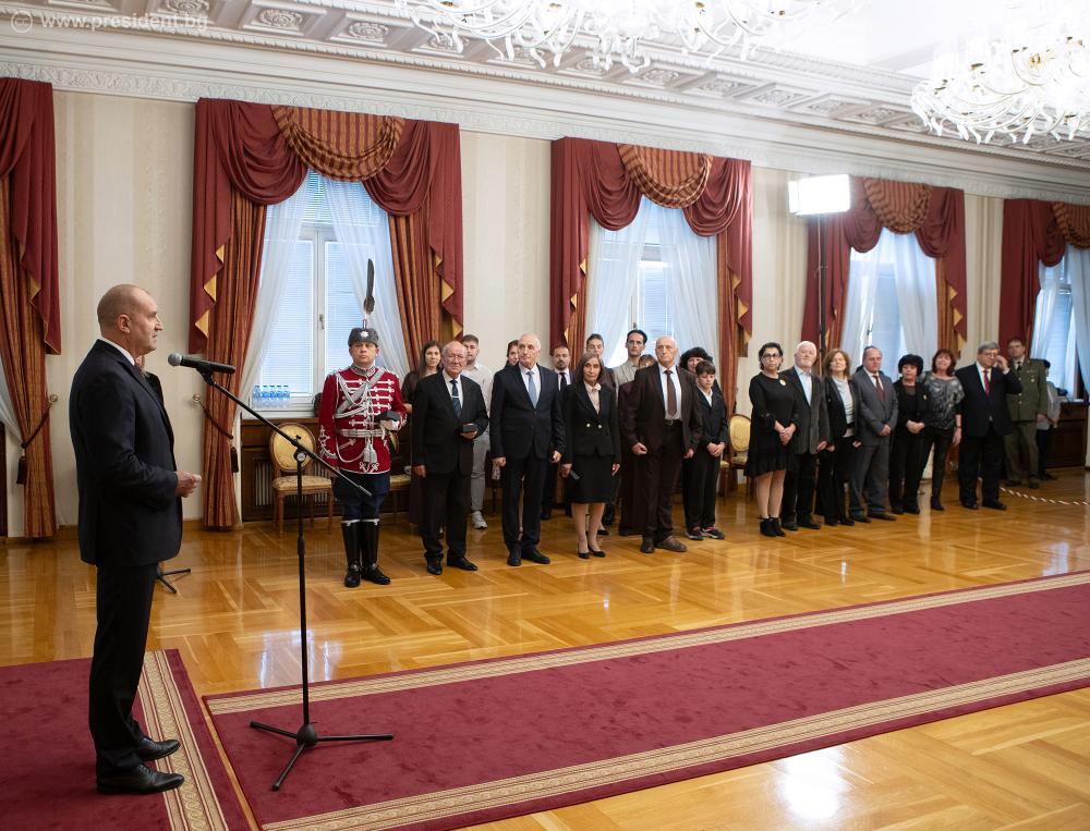 Президентът открои значимите заслуги в културата, образованието, науката и обществения живот на отличените, предложени за удостояване с Почетния знак на държавния глава от авторитетни инициативни комитети. Румен Радев изрази и своето признание за отдадеността на българските културни и просветни дейци към напредъка на България и за това, че са посветили живота си на родолюбиви и общественозначими каузи.