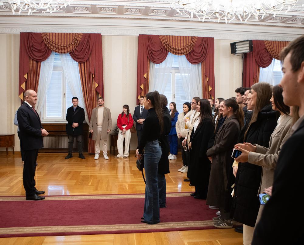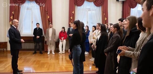 Държавният глава Румен Радев се срещна със студенти в президентската институция и изрази подкрепата си за активната им гражданска позиция в защита на демокрацията