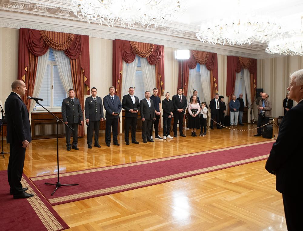 По думите на държавния глава церемонията в президентската институция днес е израз на признателността на българското общество към всички български огнеборци, военнослужещи, горски служители и доброволци. „За вашите всеотдайни усилия, поетия риск и значим принос в отстояването на най-важната ценност – човешкият живот и зеленото бъдеще на България“, допълни Румен Радев. Президентът изрази признателност и към семействата и близките на отличените за неотклонната подкрепа в трудната и рискована дейност, на която са се посветили.