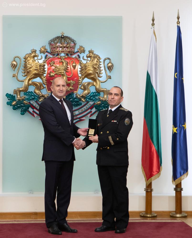 Родолюбието, високият професионализъм и обичта към морето са непреходни качества на поколения български военноморски офицери, а традициите и връзката между поколенията са неотменната сила на нашия Военноморски флот. Това заяви държавният глава и върховен главнокомандващ на Въоръжените сили Румен Радев, който отличи днес с Почетния знак на президента трима български офицери на церемония в Гербовата зала на „Дондуков“ 2. Тържественото награждаване се състоя в навечерието на 145-годишнината на Висшето военноморско училище (ВВМУ) „Н. Й. Вапцаров“, отворило врати на 9 януари 1881 година. На церемонията присъстваха курсанти от висшето училище, които преди началото й проведоха среща с президента Радев.