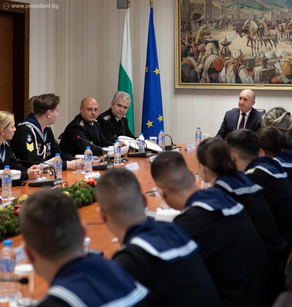 Корабната служба изисква силни командири и лидери, които да сплотяват екипажите, за да изпълняват отговорни задачи в сложната морска среда, заяви в приветствието си държавният глава Румен Радев. Президентът отбеляза достойния професионален и житейски път в редовете на Българската армия на тримата отличени, допринесли за развитието на Военноморските ни сили и за укрепване на отбранителните способности на България.