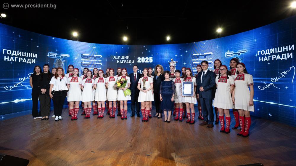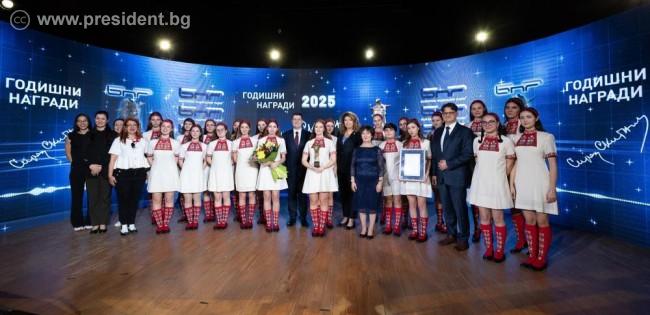 Държавният глава връчи на Детския радиохор на БНР с диригент маестра Венеция Караманова голямата награда „Сирак Скитник“ за принос в развитието на Българското национално радио като обществена медия