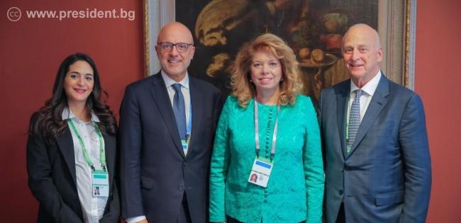 Тя подчерта, че България е светлият пример на държавата, която спасява своите евреи благодарение на съвместните усилия на Българската православна църква, на водещи политици и интелектуалци, на обикновените хора. „20 български праведници са носители на най-високото признание за хуманност на Световния център за възпоминание на Холокоста „Яд Вашем“, заяви българският държавен глава. Тя запозна представителите на Американския еврейски комитет с идеята си за създаване в България на музей за спасяването на българските евреи, който не само да събира историята, но и да е насочен и към бъдещето.