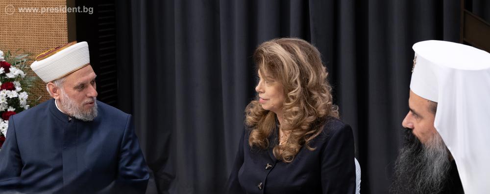 Президентът Йотова изтъкна, че е привилегия и национално постижение на българите всички етноси и вероизповедания да живеят в мир и разбирателство особено в днешния тревожен свят. „В това отношение България е пример в Европа и света“, подчерта държавният глава.
