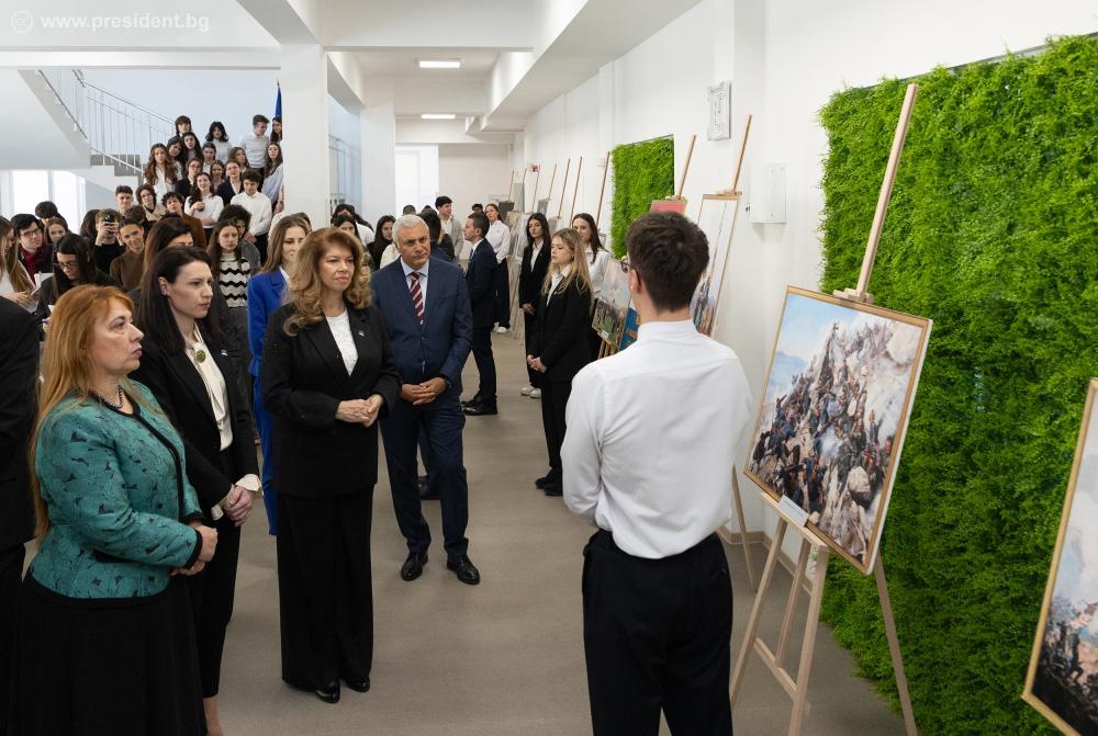Държавният глава посети изложбата „Свобода и национално съзнание“ в 9-а Френска езикова гимназия „Алфонс дьо Ламартин“