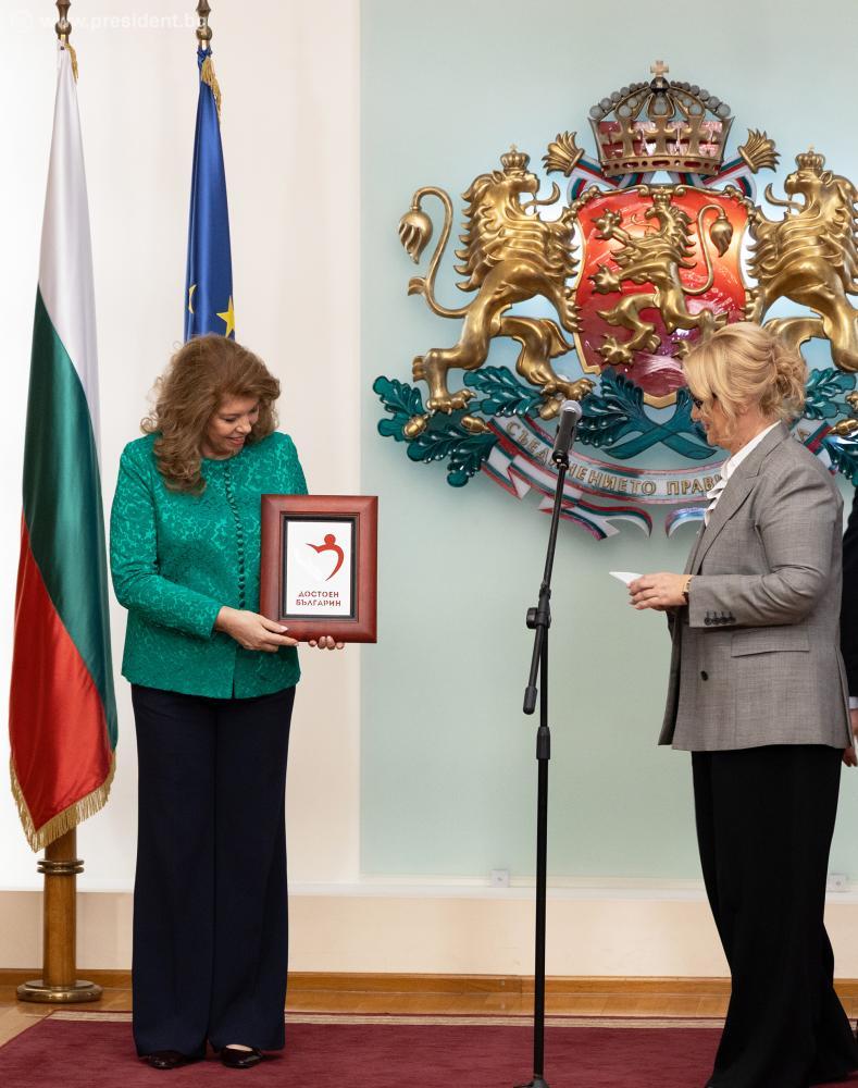 Плакет „Достойните българи“ получи президентът Йотова в знак на благодарност, че по нейна идея е започнала инициативата на „24 часа“. Екипът на медията беше изготвил и колаж със заглавия, свързани с Илияна Йотова през годините.